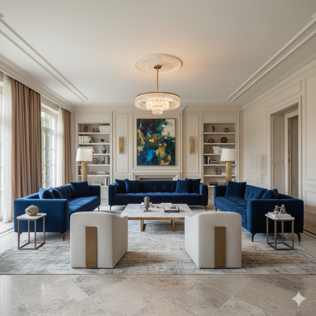 Этот стиль представляет собой гармоничный синтез, в котором уважение к классическим принципам — симметрии, пропорциям, качественным материалам — сочетается с современными элементами. Для него характерны более чистые и прямые линии, минималистичные формы мебели и нейтральная цветовая палитра, оживленная смелыми цветовыми акцентами.12 «Модерн-классик» берет от классики ее величие и респектабельность, но избавляется от излишней декоративности, делая интерьер более легким, воздушным и актуальным. Этот гибридный стиль является мостом между прошлым и настоящим, делая формальность чистого классицизма более доступной для современного потребителя, который ценит историю, но живет в динамичном настоящем.12